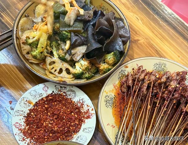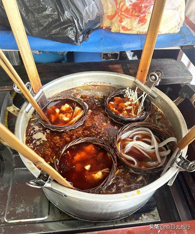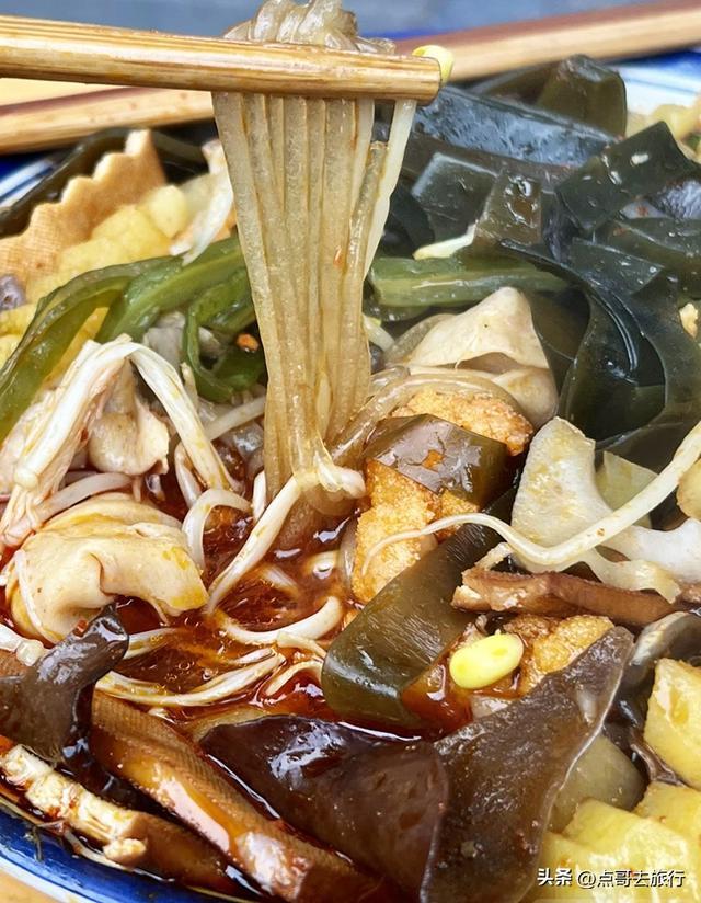 碗碗香:就是冒菜,食材自个儿选,选好后在麻辣底料里烫熟,再拌上红亮亮的豆豉酱和花生碎,配着一碗香喷喷的白米饭下肚,10元/份。